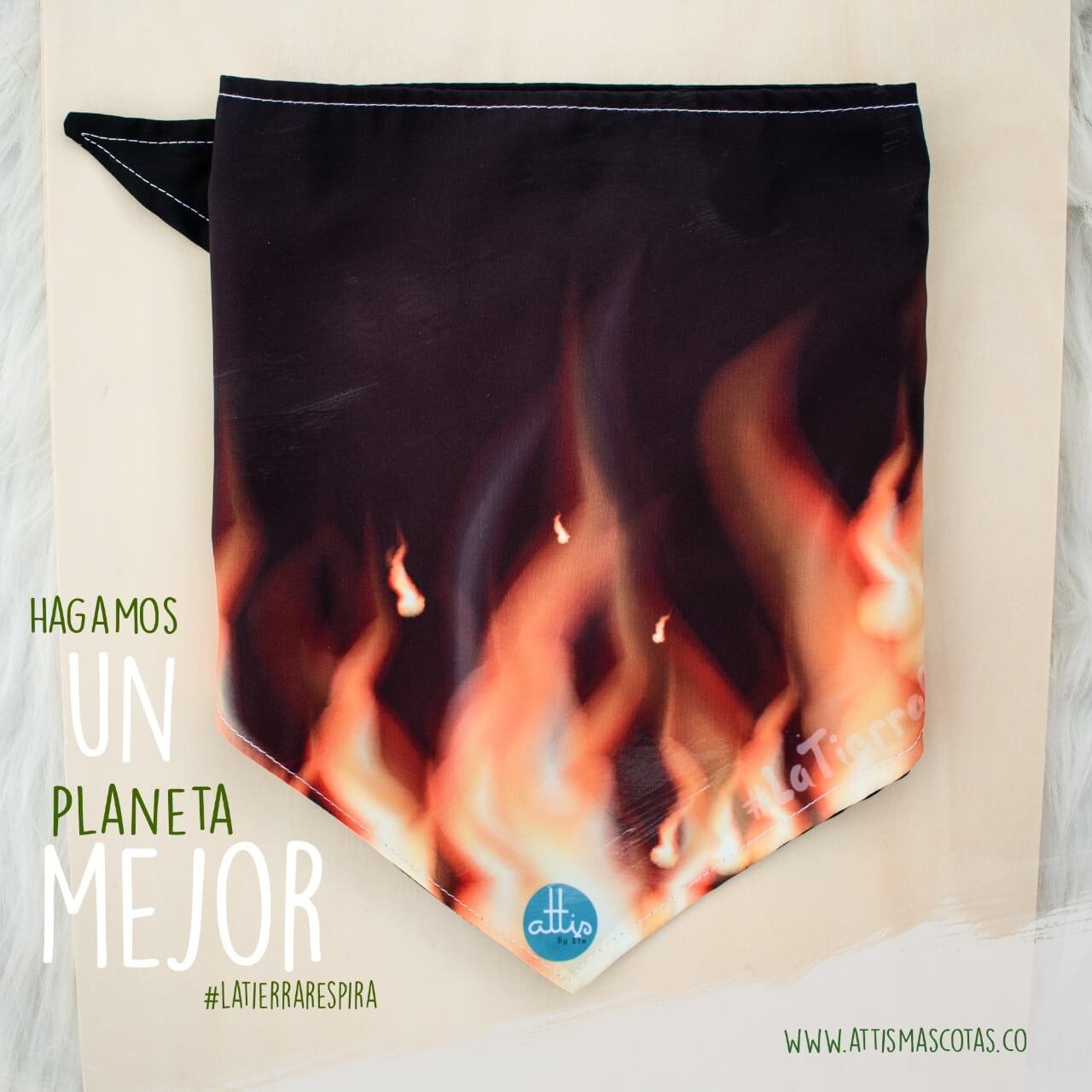 Pañoleta personalizada de Fuego en todas las tallas. Disfruta de nuestros divertidos y coloridos diseños para tus peludos.