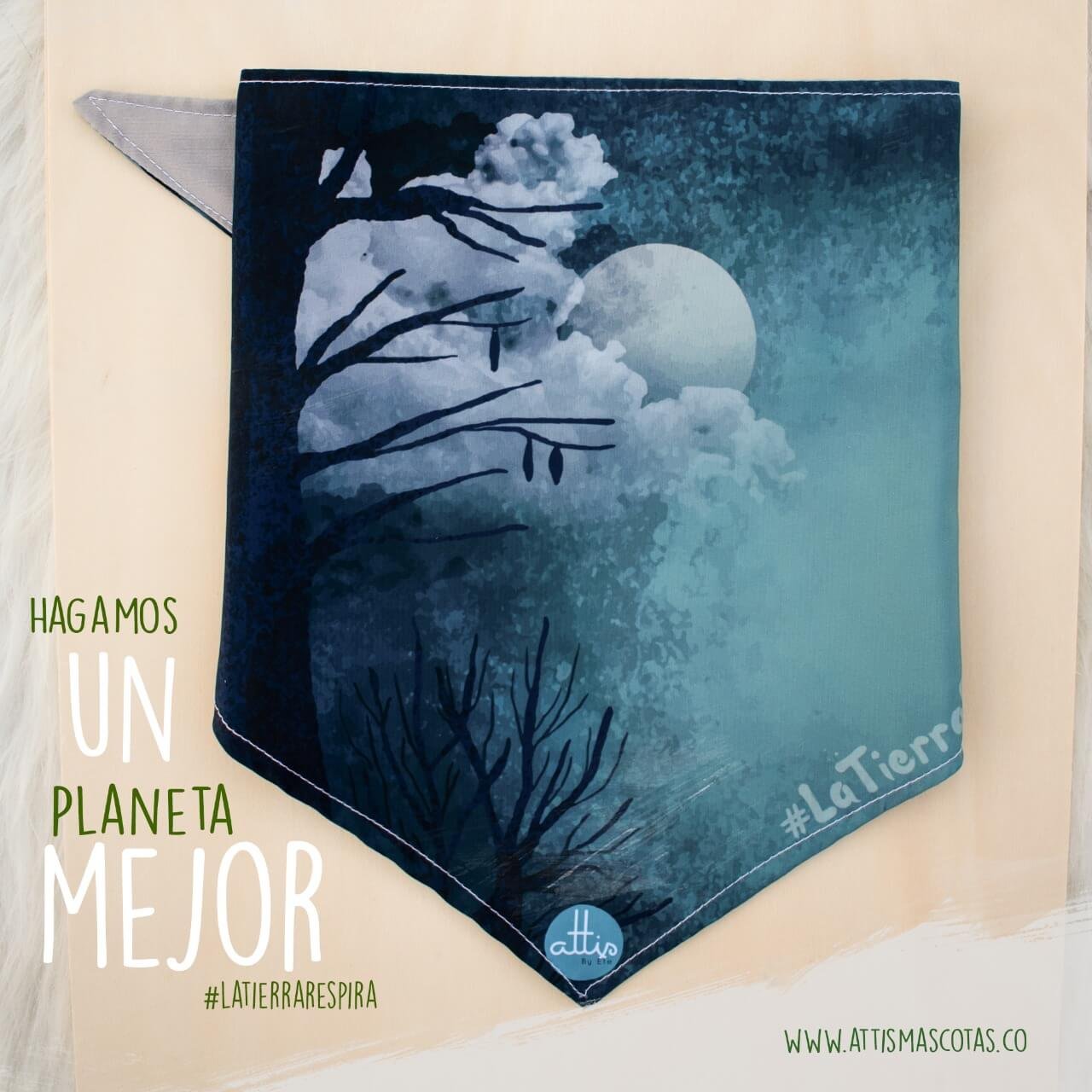 Pañoleta personalizada de Noche y Luna Llena con en todas las tallas. Disfruta de nuestros divertidos y coloridos diseños para tus peludos.