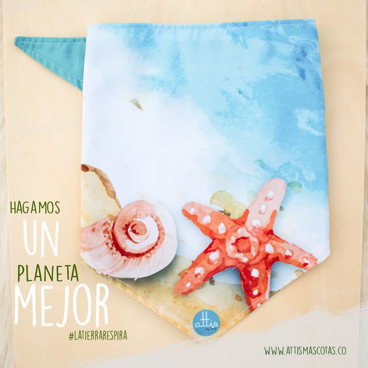 Pañoleta personalizada con diseño de playa en todas las tallas. Disfruta de nuestros divertidos y coloridos diseños para tus peludos.